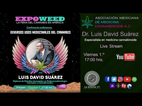 Conferencia del Dr. Luis David Suárez Rodriguez, Especialista en medicina cannabinoide, diploma de estudios avanzados en Endocannabinología, Cannabis y Cannabinoides con el tema: Diversos usos medicinales del cannabis en vivo desde la Expoweed Mexico, La feria del Cannabis en América, México Otoño 2021.